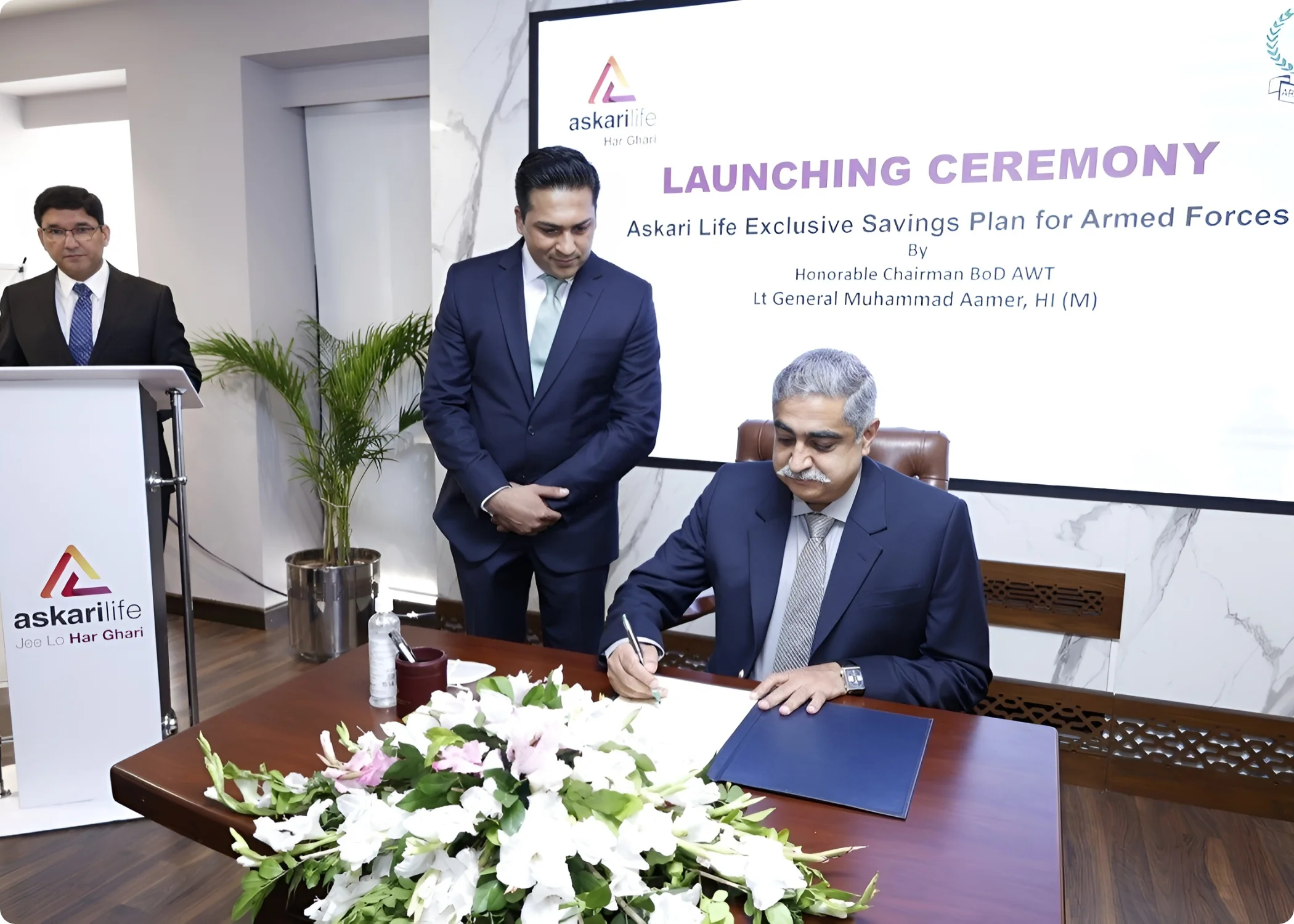 The agreement was signed by Jehanzeb Zafar (CEO, Askari Life Assurance Co. Ltd.) and Ms. Shahida Javed (President & CEO, First Women Bank Limited) in the presence of Syed Ali Imran (Head of Distribution Services, AL), Zeeshan Haider (Channel Head - Bancassurance, AL), M. Akmal Naseem (Group Head - Retail, Consumer and Corporate, FWBL), M. Amin (CFO, FWBL) and senior management of both organizations.